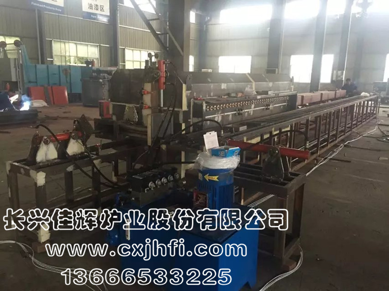 推舟式燒結(jié)爐 此設(shè)備可根據(jù)用戶要求進(jìn)行定制、定做,服務(wù)熱線:13666533225 推舟式燒結(jié)爐系連續(xù)式生產(chǎn)型工業(yè)爐,利用石墨板承載不銹鋼料盒,配合推桿一盒接著一盒地推至加熱區(qū)內(nèi)部,在氣氛保護(hù)狀態(tài)下進(jìn)行粉末還原、粉末冶金制品的燒結(jié)等熱處理。 用戶可選擇性采購料盒回旋裝置,整體成連貫式生產(chǎn)。 該生產(chǎn)線具有控制先進(jìn)、方便、節(jié)能顯著、維修方便等特點,全線加熱區(qū)均采用PID多區(qū)控溫。保護(hù)氣氛可以選擇采用氮氣或氫氮混合氣體保護(hù)。