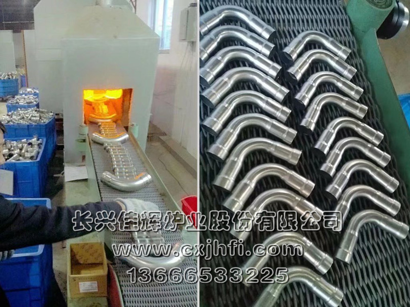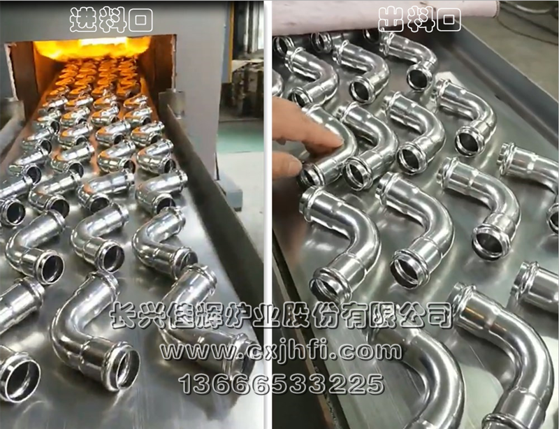 不銹鋼管件光亮退火爐 此設備可根據(jù)用戶要求進行定制、定做,服務熱線:13666533225 RST型不銹鋼管件光亮退火爐,適用于不銹鋼三通、彎頭、波紋管、長直管等管件及其他不銹鋼管件、拉伸件、零部件等在可控氣氛(氫氮混合氣體)保護下,進行光亮固溶、去應力退火、消磁等熱處理工藝的專用設備。 金屬及奧氏體產(chǎn)品在彎曲、拉伸、鍛壓、切削、鑄造、焊接等加工 不銹鋼產(chǎn)品退火溫度:950~1080℃,在此溫度下為防止產(chǎn)品與空氣接觸產(chǎn)生氧化(變黑),我公司采用氫氮混合氣體進行保護,保證產(chǎn)品進爐前和出爐后的顏色及光澤度一致。 產(chǎn)品退火處理后,表面光亮無氧化,內(nèi)應力消除,便于后期的繼續(xù)拉伸或成品出貨。本設備取代傳統(tǒng)的退火處理(傳統(tǒng)的高頻退火處理后,產(chǎn)品表面氧化成黑色,需進行后序的酸洗處理,污染環(huán)境),本生產(chǎn)線大大提高了生產(chǎn)效率,降低勞動強度及成本,改善工人的勞動環(huán)境,達到高效、節(jié)能、環(huán)保的要求。 該生產(chǎn)線具有控制先進、節(jié)能顯著、維修方便等特點,工件輸送采用耐高溫金屬鋼帶或網(wǎng)帶變頻調(diào)速,全線加熱區(qū)均采用PID自動多區(qū)控溫。